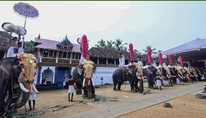 ഹൈക്കോടതി ഉത്തരവുപ്രകാരമുള്ള അകലംപാലിച്ച്‌ 15 ആനകളെ എഴുന്നള്ളിച്ച്‌ തൃപ്പൂണിത്തുറ ശ്രീപൂർണത്രയീശ ക്ഷേത്രത്തിൽ വൃശ്ചികോത്സവത്തിന്‌ തുടക്കം. ഉത്സവത്തിന്റെ ആദ്യദിനത്തിലെ ശീവേലിക്ക്‌ ക്ഷേത്രമതിൽക്കകത്ത് ആനപ്പന്തലിലും മുന്നിലുമായി ആനകളെ രണ്ടുനിരയാക്കി നിർത്തിയാണ് ശീവേലി തുടങ്ങിയത്. തെക്കെ നടയിൽ എത്തിയപ്പോൾ 15 ആനകളെയും മൂന്നു മീറ്റർ അകലത്തിൽ ദൂരപരിധി പാലിച്ച് നിരത്തി നിർത്തി.