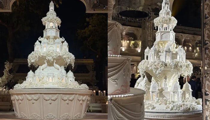 പാരീസ് ആസ്ഥാനമായുള്ള ലക്ഷ്വറി കെയ്ക്ക് ഡിസൈനറും പേസ്ട്രി ഷെഫുമായ ബാസ്റ്റ്യന് ബ്ലാങ്ക്-ടൈലൂ ആണ് ഈ കേക്ക് തയ്യാറാക്കിയത്. പ്രമുഖരായ ആളുകള്ക്കായി ആഡംബരപൂര്ണമായ മധുരപലഹാരങ്ങള് തയ്യാറാക്കുന്നതില് പ്രശസ്തനാണ് അദ്ദേഹം.വെളുത്ത് തിളക്കമുള്ളതും മൃദുവുമായ ഈ കൂറ്റന് കെയ്ക്ക് രാജസ്ഥാന് വാസ്തുവിദ്യയില് നിന്ന് പ്രചോദനം ഉള്ക്കൊണ്ടതാണ്. കൊട്ടാരങ്ങളുടെയും കോട്ടകളുടെയും പ്രൗഢി അതില് പകര്ത്തിവെച്ചിട്ടുണ്ട്. സങ്കീര്ണമായ കൊത്തുപണികള് ചെയ്ത കെയ്ക്കില് ആന, കടുവ, മയില് എന്നിവയുള്പ്പെടെയുള്ളവ പണികളും ചെയ്തിട്ടുണ്ട്. പല തട്ടുകളായാണ് കെയ്ക്ക് തയ്യാറാക്കിയിരിക്കുന്നത്.