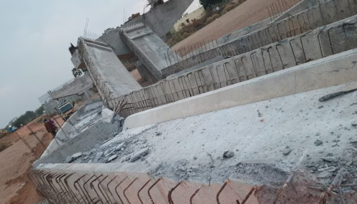 English summary;A bridge in Telangana, which was not completed for eight years, collapsed due to heavy winds