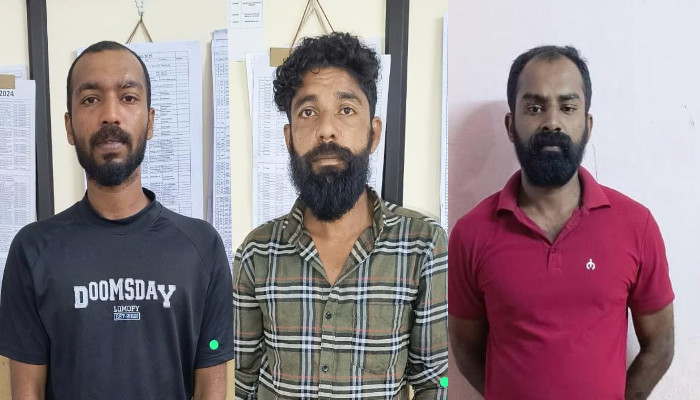 യുവാവിനെ തട്ടി കൊണ്ട് പോയി മുറിയില് മണിക്കൂറുകളോളം പൂട്ടിയിട്ട് ക്രൂരമായി മർദിച്ച കേസിലെ പ്രതികൾ പിടിയിൽ. കൊലക്കേസ് പ്രതിയായ യദുകൃഷ്ണൻ, നിരവധി കൊലപാതക ശ്രമ കേസിലെ പ്രതിയായ ഫാറൂഖ്, അശ്വിൻ എന്നിവരെയാണ് ഹരിപ്പാട് ഐഎസ്എച്ച്ഒ മുഹമ്മദ് ഷാഫിയുടെ നേതൃത്തിൽ ഉള്ള സംഘം പിടികൂടിയത്. ഉച്ചക്ക് ശേഷം ജോലി കഴിഞ്ഞുവന്ന വിഷ്ണുവിനെ തടഞ്ഞുനിർത്തി മുറിയില് കൊണ്ട് പൂട്ടിയിട്ട് ക്രൂരമായി മര്ദ്ദിക്കുകയായിരുന്നു. ആ സമയം മുറിയിലുണ്ടായിരുന്ന മറ്റ് രണ്ടു കുട്ടികളേയും ഉപദ്രവിക്കുന്നുണ്ടായിരുന്നു. വിഷ്ണുവിന്റെ ഫോണ്, ബൈക്കിന്റെ താക്കോല്, കഴുത്തിൽ കിടന്ന രണ്ട്പവന്റെ സ്വർണമാല, കൈയ്യിൽ കിടന്ന അര പവന്റെ ചെയ്ന്, കാതിൽ കിടന്ന റിംഗ്, സ്മാർട്ട് വാച്ച്, ഇട്ടിരുന്ന വസ്ത്രവും ഊരി വാങ്ങി. 15,000 രൂപ തന്നാൽ വിഷ്ണുവിനെ വിടാമെന്നും പറഞ്ഞു. പണം വിഷ്ണുവിന്റെ കൈയ്യിൽ ഇല്ലെന്ന് പറഞ്ഞപ്പോൾ ആരോടെങ്കിലും ചോദിച്ച് പണം ഗൂഗിൾ പേയിൽ അയപ്പിക്കാൻ പറഞ്ഞു. രാത്രിയോടെ പലരെയും വിളിച്ചു പണം കടമായി അയക്കാന് ആവശ്യപ്പെടുകയും ചെയ്തു. വേറെ എന്തേലും പറഞ്ഞാൽ കൊന്നു കളയുമെന്ന് പ്രതികള് ഭീഷണിപ്പെടുത്തി.