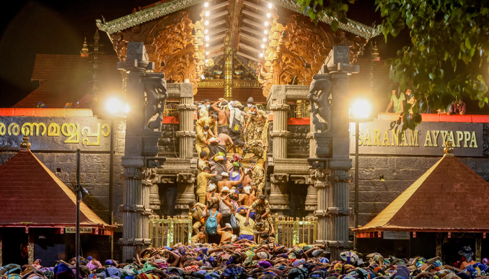 ശബരിമലയിൽ പതിനെട്ടാംപടിയിൽ നിന്ന് വീണ് അമ്പലപ്പുഴ സംഘത്തിന്റെ സമൂഹപ്പെരിയോന്റെ കാല്മുട്ട് പൊട്ടി. എൻ ഗോപാലകൃഷ്ണ പിള്ളയ്ക്കാണ് പരിക്കേറ്റത്. പതിനെട്ടാംപടിയിൽ തിരക്ക് നിയന്ത്രിക്കാനുണ്ടായിരുന്ന പൊലീസ് ഉദ്യോഗസ്ഥരുടെ തള്ളലിൽ നിയന്ത്രണം നഷ്ടപ്പെട്ടാണ് അദ്ദേഹം വീണത്.
