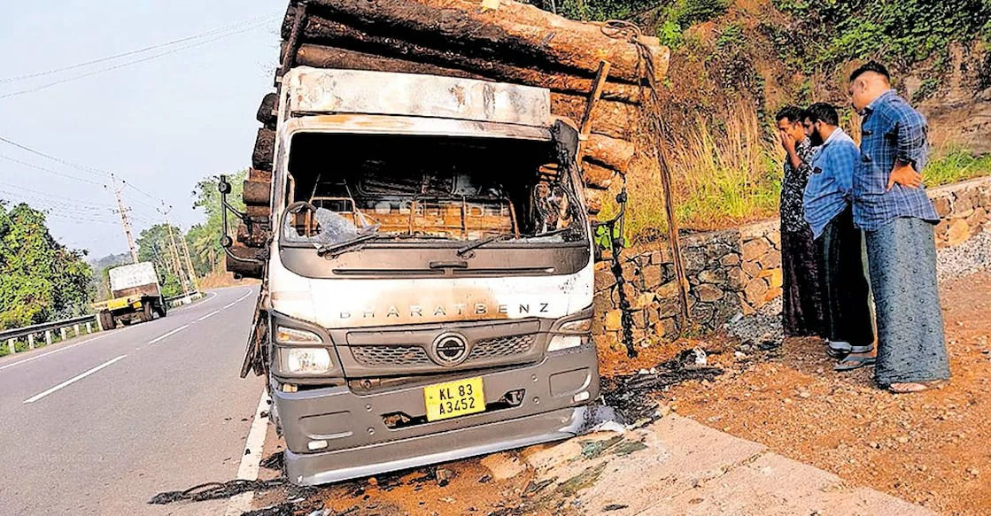 റബർത്തടി കയറ്റിവന്ന ലോറിയുടെ കാബിനിൽ തീപിടിച്ചു. പുനലൂർ മൂവാറ്റുപുഴ സംസ്ഥാനപാതയിൽ ചെറുവള്ളി കുന്നത്തുപുഴയിൽ വെച്ചാണ് സംഭവം. കോന്നിയിൽ നിന്ന് പെരുമ്പാവൂരിലേക്ക് തടിയുമായി പോവുകയായിരുന്ന ലോറിയുടെ ടയർ പൊട്ടിയതിനെ തുടർന്ന് നിയന്ത്രണം നഷ്ടപ്പെടുകയായിരുന്നു. തുടര്ന്നുണ്ടായ അപകടത്തില് കാബിനിൽ തീ പിടിക്കുകയായിരുന്നു. ഷോർട്ട് സർക്ക്റ്റ്യൂട്ട് മൂലമാണ് തീ പടർന്നതെന്നാണ് കരുതുന്നത്. റബർത്തടിയിലേക്കു തീ പടർന്നില്ലെങ്കിലും കാബിനോടു ചേർന്നു വച്ചിരുന്ന തടികൾ കരിഞ്ഞു.