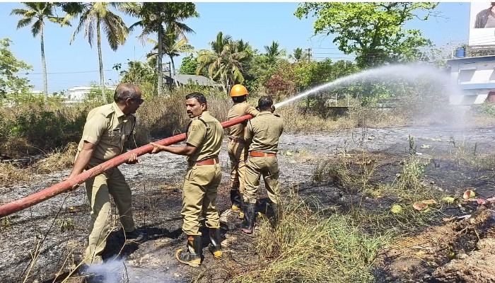 അമ്പലപ്പുഴ കെ എസ് ഇ ബി ഓഫീസിന് സമീപം തീപിടുത്തം.കെ എസ് ഇ ബി യുടെ കേബിൾ കത്തി നശിച്ചു. ഫയർ ഫോഴ്സെത്തി തീയണച്ചു.ഇന്ന് രാവിലെ 10 .45 ഓടെയാണ് തീപിടുത്തമുണ്ടായത്.കെ എസ് ഇ ബിയുടെ തെക്കു ഭാഗത്തെ മൈതാനത്ത് തടിയിൽ നിർമിച്ച രണ്ട് ഡ്രമ്മുകളിലായാണ് ലൈൻ വലിക്കാനായി ഉപയോഗിക്കുന്ന എ ബി സി കേബിൾ സൂക്ഷിച്ചിരുന്നത്.കുറ്റിക്കാടിന് തീപിടിച്ചപ്പോൾ കേബിളിലേക്കും തീ പടരുകയായിരുന്നു. ഉടൻ തന്നെ നാട്ടുകാർ തീയണക്കാൻ ശ്രമിച്ചെങ്കിലും പരാജയപ്പെട്ടതോടെ തകഴിയിൽ നിന്നെത്തിയ ഫയർ ഫോഴ്സ് അര മണിക്കൂറോളം ശ്രമിച്ചാണ് തീയണച്ചത്.ദേശീയ പാതക്കരികിലെ ഈ പ്രദേശം മാലിന്യക്കൂമ്പാരമായി മാറിയിരിക്കുകയാണ്.ഇവിടെ എങ്ങനെ തീ പിടുത്തമുണ്ടായെന്ന് വ്യക്തമായിട്ടില്ല. ഒരാഴ്ച മുൻപും സമീപത്ത് കാടിന് വലിയ രീതിയിൽ തീ പിടുത്തമുണ്ടായിരുന്നു.