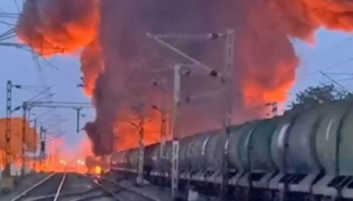 എണ്ണയുമായി വന്ന ചരക്ക് ട്രെയിന് തീപിടിച്ചു; അണക്കാൻ ഊർജ്ജിത ശ്രമം