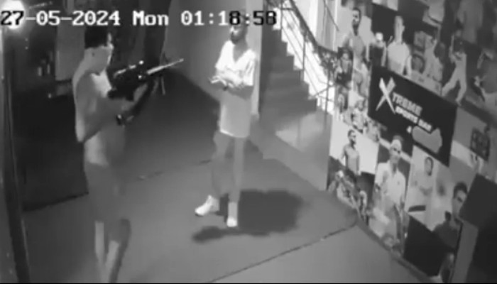 തുടര്ന്നാണ് റൈഫിള് ഉപയോഗിച്ച് വെടിവെച്ചത്. ഷോര്ട്ട്സ് മാത്രം ധരിച്ച്, ടീഷര്ട്ട് കൊണ്ട് മുഖം മറച്ച് എത്തിയ അക്രമി ഡിജെ സന്ദീപ് പ്രമാണിക്കിനെ തൊട്ടടുത്തെത്തി വെടിവെയ്ക്കുന്ന സിസിടിവി ദൃശ്യങ്ങള് പുറത്തു വന്നു.