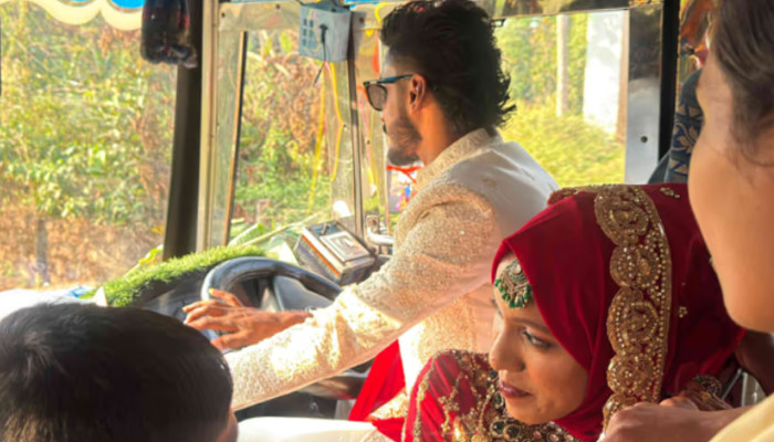 മലപ്പുറത്ത് നടന്ന ഒരു വിവാഹം ഇപ്പോള് വൈറലാവുകയാണ്. ഷാക്കിറിന്റെയും ഹര്ഷിദയുടേയും കല്ല്യാണമാണ് സമൂഹമാധ്യമങ്ങളില് ചര്ച്ചയാകുന്നത്. വര്ഷങ്ങളായി കോട്ടക്കല് മരവട്ടം വഴി കാടാമ്പുഴ സര്വ്വീസ് നടത്തുന്ന ഫന്റാസ്റ്റിക് ബസിലെ കണ്ടക്ടര് കം ഡ്രൈവറാണ് ഷാക്കിര്. ഇതിനിടയിലാണ് കല്യാണം ഒത്തുവന്നത്. മലപ്പുറം ഗവ. കോളജിലെ ഡിഗ്രി വിദ്യാര്ഥി ഫര്ഷിദയാണ് വധു. കോട്ടപ്പുറം ചേങ്ങോട്ടൂരാണ് ഇവരുടെ വീട്. ബസ് ജീവനക്കാരനായതിനാല് ബസ് തന്നെ വിവാഹ വാഹനമാക്കണമെന്ന് ഒരാഗ്രഹം. കാര്യം പറഞ്ഞപ്പോള് ഹര്ഷിദ ഡബിള് ബെല്ലടിച്ചു. ഉടമ ഏറിയസ്സന് അബ്ബാസിനോടും മാനേജര് ടി ടി മൊയ്തീന് കുട്ടിയോടും കാര്യം പറഞ്ഞു. പിന്നാലെ മോട്ടോര് വാഹന വകുപ്പിന്റെ അനുമതിയും ലഭിച്ചതോടെ ബസ് കല്ല്യാണത്തിനായി ചമഞ്ഞൊരുങ്ങി. പത്തായക്കല്ലില് നിന്നും ചേങ്ങോട്ടൂരിലേക്ക് ബന്ധുക്കളുമായിട്ടായിരുന്നു യാത്ര. തിരിച്ചുള്ള യാത്രയില് സഖിയായ ഹര്ഷിദയും. വിവാഹയാത്ര വ്യത്യസ്തമാക്കിയ ഇരുവര്ക്കും ആശംസകളുടെ പ്രവാഹമാണ്.