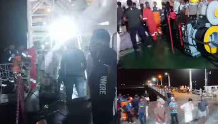കപ്പലിൽ രോഗികളടക്കം 220 യാത്രക്കാരുണ്ട്. കൽപേനി, അന്ത്രോത്ത് ദ്വീപുകളിലേക്ക് പോകാനുളളവരാണ് കുടുങ്ങിയത്. ചരക്ക് ഇറക്കാതെ കപ്പലിന് യാത്ര തുടരാനാവില്ല എന്നതാണ് പ്രതിസന്ധിക്ക് കാരണം. യാത്രക്കാർ പ്രതിഷേധിച്ചതോടെ പോർട്ട് അതോറിറ്റി ഉദ്യോഗസ്ഥർ കപ്പലിലെത്തി യാത്രക്കാരുമായും യൂണിയൻ പ്രതിനിധികളുമായും ചർച്ച നടത്തി. ചരക്ക് ഇറക്കി യാത്ര ഉടൻ തുടങ്ങാനാകുമെന്ന് ഉദ്യോഗസ്ഥർ അറിയിച്ചു.