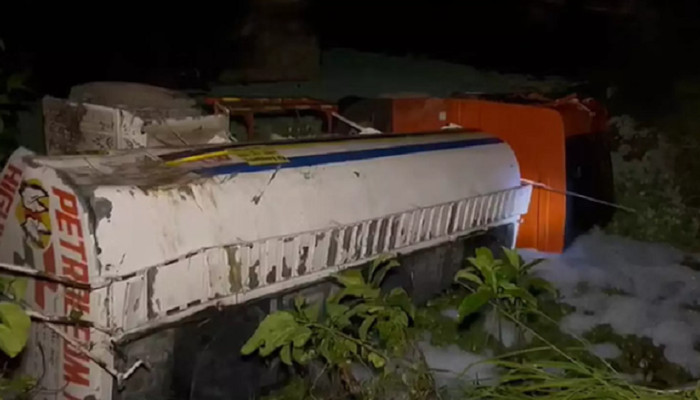 A tanker lorry carrying petrol overturned at Kilimanoor Thatthatumala