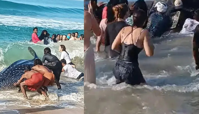 കൊല്ലത്ത് തിമിംഗലസ്രാവ് കരയിലെത്തി