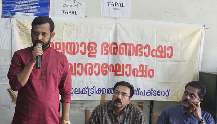 ചീഫ് ഇലക്ട്രിക്കൽ ഇൻസ്പെക്ടറേറ്റ് ഓഫിസ് ഭരണഭാഷ വാരാഘോഷം സംഘടിപ്പിച്ചു. പ്രശസ്ത കവിയും സാഹിത്യകാരനുമായ സുമേഷ് കൃഷ്ണൻ മുഖ്യ പ്രഭാഷണം നടത്തി. ചീഫ് ഇലക്ട്രിക്കൽ ഇൻസ്പെക്ടർ ജി വിനോദ് പരിപാടി ഉദ്ഘാടനം ചെയ്തു. അഡിഷണൽ ചീഫ് രാജേഷ് ബാബു അധ്യക്ഷത വഹിച്ചു. ശുഭ കെ പി സ്വാഗതവും ശ്രീ പ്രദീപ് നാഥ് നന്ദിയും പറഞ്ഞു.