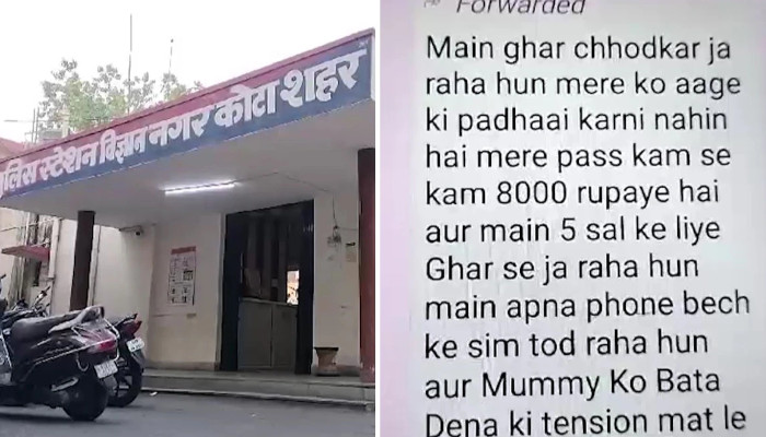 മകനെ കണാനില്ലെന്ന് വ്യക്തമാക്കി വീട്ടുകാര് കോട്ട പൊലീസില് പരാതി നല്കിയിരുന്നുവെങ്കിലും വേണ്ടവിധത്തില് അന്വേഷണം ഉണ്ടായിട്ടില്ലെന്ന് അവര് ആരോപിക്കുന്നു. തുടര്ന്ന് കുടുംബം നാലു ടീമുകളായി പിരിഞ്ഞ് വിവിധയിടങ്ങളില് തെരച്ചില് നടത്തിയനൊടുവില് ഗോവയില് നിന്നാണ് വിദ്യാര്ത്ഥിയെ കണ്ടെത്തിയത്.