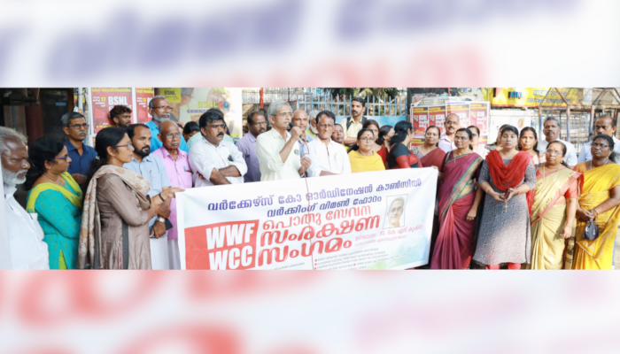 വർക്കേഴ്സ് കോർഡിനേഷൻ കൗൺസിൽ സംസ്ഥാന ജനറൽ സെക്രട്ടറി എം എം ജോർജ്ജ് അധ്യക്ഷത വഹിച്ചു. എഐടിയുസി ജില്ലാ സെക്രട്ടറി കെ എൻ ഗോപി മുഖ്യപ്രഭാഷണം നടത്തി. ഡബ്ല്യൂസിസി പ്രസീഡിയം അംഗം അഡ്വ ജി മോട്ടിലാൽ, ജില്ലാ സെക്രട്ടറി എ വി ഉണ്ണികൃഷ്ണൻ, വർക്കിംഗ് വിമൺ ഫോറം ജില്ലാ പ്രസിഡന്റ് ഇ പി പ്രവിത, സെക്രട്ടറി സജിനി തമ്പി, ജോയിന്റ് കൗൺസിൽ സംസ്ഥാന കൗൺസിൽ അംഗങ്ങളായ സി എ അനീഷ്, പി എ രാജീവ്, വിവിധ സംഘടനാ നേതാക്കളായ കുമ്പളം രാജപ്പൻ, പി വി ചന്ദ്രബോസ്, പി ആർ സുരേഷ്, കെ സി മണി, സി അംബുജം, അനിൽകുമാർ വി, സി എ കുമാരി, സിജി ബാബു, ഷൈജു മൈക്കിൾ, ബാബു കടമക്കുടി എന്നിവർ പ്രസംഗിച്ചു.