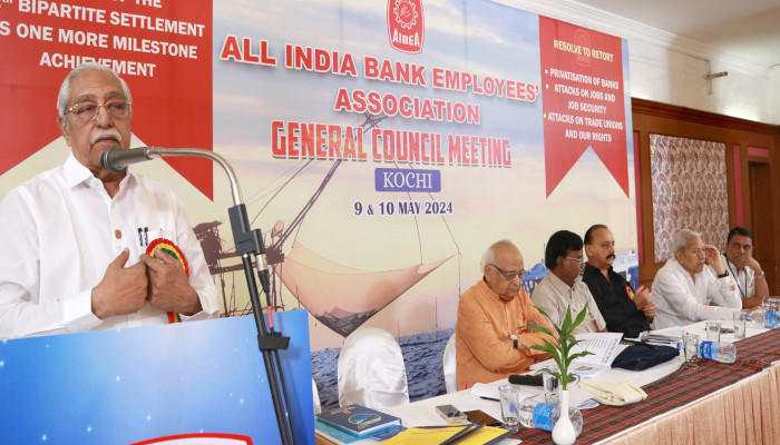 ദേശീയ പ്രസിഡന്റ് രാജൻ നഗർ അധ്യക്ഷത വഹിച്ച ജനറല് കൗണ്സില് യോഗത്തിൽ സി എച്ച് വെങ്കടാചലം റിപ്പോർട്ട് അവതരിപ്പിച്ചു. കെ എസ് കൃഷ്ണ സ്വാഗതം പറഞ്ഞു. നാനൂറോളം അംഗങ്ങൾ പങ്കെടുക്കുന്നു. ജീവനക്കാരുടെ സേവന വേതന വ്യവസ്ഥകൾ സംബന്ധിച്ച പന്ത്രണ്ടാം വ്യവസായ തല ഉഭയകക്ഷി കരാർ, കിട്ടാക്കടങ്ങൾ വൻതോതിൽ എഴുതിത്തള്ളുന്ന കേന്ദ്ര സർക്കാർ നയങ്ങൾ തുടങ്ങി നിരവധി വിഷയങ്ങളിൽ ചർച്ച നടന്നു. പൊതുസമ്മേളനം എഐബിഇഎ ജനറൽ സെക്രട്ടറി സി എച്ച് വെങ്കടാചലം ഉദ്ഘാടനം ചെയ്തു. എഐബിഇഎ ദേശീയ ഭാരവാഹികൾക്ക് സമ്മേളനത്തിൽ സ്വീകരണം നൽകി. യോഗം നാളെ സമാപിക്കും.