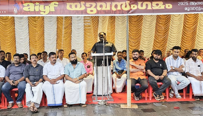 ഭരണഘടനയെ സംരക്ഷിക്കാം മതേതര ഇന്ത്യയെ വീണ്ടെടുക്കാം എന്ന മുദ്രാവാക്യം ഉയർത്തി എഐവൈഎഫ് മണ്ഡലം കേന്ദ്രങ്ങളിൽ യുവസംഗമം സംഘടിപ്പിച്ചു. കളമശ്ലേരി മണ്ഡലം കമ്മറ്റിയുടെ കരുമാലൂർ തട്ടാംപടിയിൽ വെച്ച് സംഘടിപ്പിച്ച യുവസംഗമം എ ഐ വൈ എഫ് സംസ്ഥാന സെക്രട്ടറി ടി ടി ജിസ്മോൻ ഉദ്ഘാടനം ചെയ്തു ജില്ലാ ജോസെക്രട്ടറി പി എം നിസാം മുദ്ധീൻ അദ്ധ്യക്ഷത വഹിച്ചു. കെ എ അൻഷാദ് , എം ടി നിക്സൻ, പി എ അയുബ് ഖാൻ, ജോർജ് മേനാച്ചേരി, വി എ ഷബീർ കെ കെ സുബ്രമണ്യൻ, പി എൻ സരസൻ, അർജുൻ രവി , അബ്ദുൾ സലിം എന്നിവർ പ്രസംഗിച്ചു .