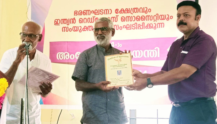 ഭരണ ഘടനാ ക്ഷേത്രവും, ഇൻഡ്യൻ റെഡ് ക്രോസ് സൊസൈറ്റിയും പേരൂർക്കട ബാപ്പുജി ഗ്രന്ഥശാല ആഡിറ്റോറിയത്തിൽ സംഘടിപ്പിച്ച 134-മത് അംബേദ്കർ ജയന്തി ആഘോഷത്തൽ മരണാനന്തര അവയവദാനം ചെയ്യുന്നവർക്കുള്ള തിരുവനന്തപുരം മെഡിക്കൽ കോളേജ് അനാട്ടമി വകുപ്പിന്റെ സർട്ടിഫിക്കറ്റുകൾ ചലച്ചിത്ര പിന്നണി ഗായകൻ പട്ടം സനിത്ത് നല്കി ആദരിച്ചു.