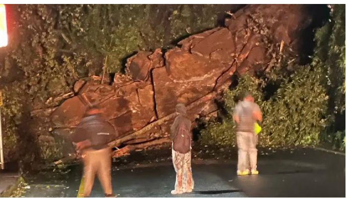 ഒരു വാഹനത്തിന്റെ തൊട്ടരികിലാണ് കല്ല് പതിച്ചത്. നിലവിൽ വാഹനങ്ങള് കടന്നുപോകുന്നുണ്ട്. സുരക്ഷാഭീഷണി നിലനിൽക്കുമ്പോഴും സ്ഥലത്ത് ഉദ്യോഗസ്ഥര് ആരും എത്തിയിട്ടില്ല.നേരിയ മഴ പെയ്യുന്നുണ്ട്. റോഡിന്റെ പകുതി വരെ കല്ലുകൾ വീണുകിടക്കുകയാണ്. മണ്ണിടിച്ചില് ഉണ്ടായിടത്ത് നീര്ച്ചാലും രൂപപ്പെട്ടിട്ടുണ്ട്. മണ്ണും പാറയും റോഡില് കിടക്കുന്നതിനാല് ഒറ്റവരിയായിട്ടാണ് വാഹനങ്ങള് കടന്നു പോകുന്നത്.