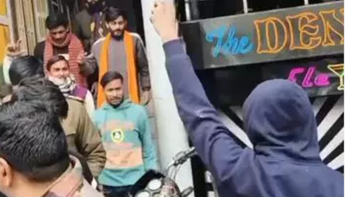 ജയ് ശ്രീറാം വിളിച്ചുകൊണ്ടാണ് പ്രതികള് പരിപാടി നടന്ന കഫേയിലേക്ക് എത്തിയത്.എന്നാല് പ്രതികളെ ചോദ്യം ചെയ്ത പെണ്കുട്ടിയോട് കയര്ത്ത് സംസാരിക്കുന്ന പൊലീസിനെയും ഈ ദൃശ്യങ്ങളില് കാണാം. ഭീഷണി മുഴക്കിയ പ്രവര്ത്തകരെ പൊലീസ് അനുനയിപ്പിക്കുന്നുമുണ്ട്.ബിഎന്എസിലെ ഉപദ്രവം, ഉപദ്രവത്തിന് തയ്യാറെടുത്ത ശേഷം വീട്ടില് അതിക്രമിച്ച് കടക്കല്, സമാധാന ലംഘനത്തിനായി മനപൂര്വ്വം അപമാനിക്കല്, ക്രിമിനല് ഭീഷണി എന്നീ വകുപ്പുകള് പ്രകാരമാണ് പ്രതികള്ക്കതിരെ കേസെടുത്തിരിക്കുന്നത്.