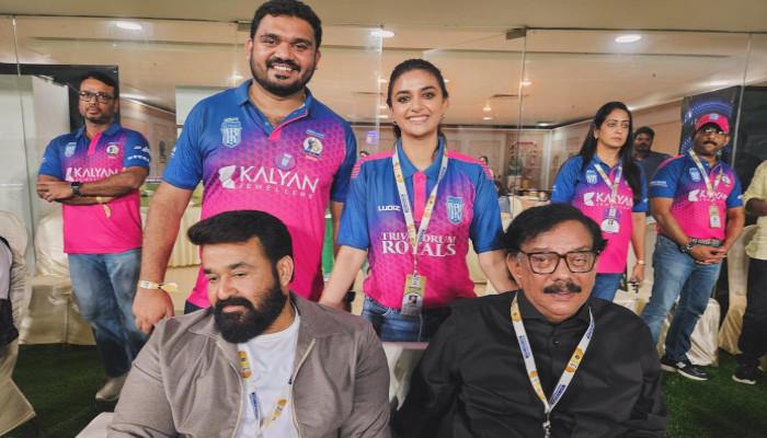 കേരള ക്രിക്കറ്റ് ലീഗിന്റെ ആവേശം കാണികളില് മുഴുകുമ്പോള് ഗ്രൗണ്ടിൽ ഇഞ്ചോടിഞ്ച് പോരാട്ടം. പിന്തുണയുമായി താരങ്ങൾ സ്റ്റേഡിയത്തിലും. ട്രിവാൺഡ്രം — കൊച്ചി മത്സരം ശ്രദ്ധേയമായത് താരസാന്നിധ്യം കൊണ്ട് കൂടിയാണ്. ടീമിന്റെ ഉടമസ്ഥർ കൂടിയായ സംവിധായകന് പ്രിയദര്ശന്, കല്യാണി പ്രിയദര്ശന്, കീര്ത്തി സുരേഷ് തുടങ്ങിയവർ മത്സരം കാണാൻ സ്റ്റേഡിയത്തിലുണ്ടായിരുന്നു. ഒപ്പം താരപ്രഭയഭയുടെ മാറ്റ് കൂട്ടി സാക്ഷാൽ മോഹൻലാലും.