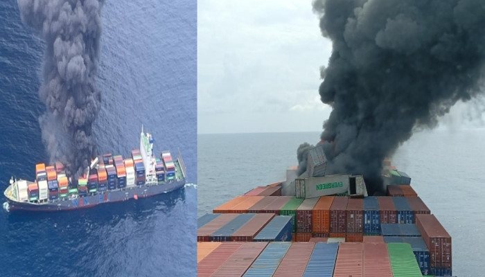 കപ്പലിലെ തീ പൂർണമായി അണയ്ക്കാൻ ഇതുവരെ സാധിച്ചിട്ടില്ല. ഇന്ത്യൻ നേവിയുടെയും കോസ്റ്റ്ഗാർഡിന്റെയും സംഘം പ്രദേശത്ത് രക്ഷാപ്രവർത്തനം നടത്തുകയാണ്. കപ്പലിൻ്റെ താഴത്തെ ഡെക്കിൽ നിന്നാണ് തീപിടുത്തം ഉണ്ടായതെന്നാണ് വിവരം. ന്യൂ മാംഗ്ലൂരിൽ നിന്നുള്ള ഐസിജിഎസ് രാജ്ദൂത്, കൊച്ചിയിൽ നിന്നുള്ള ഐസിജിഎസ് അർൺവേഷ്, അഗത്തിയിൽ നിന്നുള്ള ഐസിജിഎസ് സാച്ചെത് എന്നീ കോസ്റ്റ് ഗാർഡ് കപ്പലുകളെ സഹായത്തിനായി തിരിച്ചുവിട്ടതായി കോസ്റ്റ് ഗാർഡ് അറിയിച്ചു. അപകടത്തിൽപ്പെട്ട കപ്പലിലെ തൊഴിലാളികളെ കേരള തീരത്ത് എത്തിച്ചാൽ അടിയന്തര ചികിത്സ ലഭ്യമാക്കാൻ എറണാകുളം, കോഴിക്കോട് ജില്ലാ കളക്ടർമാർക്ക് മുഖ്യമന്ത്രി നിർദ്ദേശം നൽകി. നിലവില് സിംഗപ്പൂർ ഷിപ്പിംഗ് അധികൃതർക്ക് ഇന്ത്യ വിവരം കൈമാറിയിട്ടുണ്ട്. ബിഎസ്എം എന്ന കമ്പനിക്കായിരുന്നു കപ്പലിന്റെ നടത്തിപ്പ് ചുമതല. ഈ കമ്പനിയുമായും ഷിപ്പിംഗ് മന്ത്രാലയം ബന്ധപ്പെടുന്നുണ്ട്.