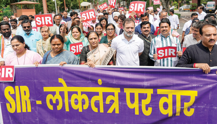 ബിഹാര് വോട്ടര് പട്ടിക വിഷയത്തില് അടിയന്തര പ്രമേയ നോട്ടീസുകള്ക്ക് അനുമതി നിഷേധിച്ചതോടെ പാര്ലമെന്റിന്റെ ഇരു സഭകളും തുടര്ച്ചയായ അഞ്ചാം ദിവസവും സ്തംഭിച്ചു. വിഷയത്തില് സര്ക്കാര് നടത്തുന്ന ഒളിച്ചുകളിക്ക് വഴങ്ങേണ്ടതില്ലെന്നാണ് പ്രതിപക്ഷ തീരുമാനം. ഇന്നലെ രാവിലെ സമ്മേളിച്ച ലോക്സഭയുടെ മേശപ്പുറത്ത് വയ്ക്കാനുള്ള റിപ്പോര്ട്ടുകള് അവതരിപ്പിക്കുന്ന നടപടിയോടെയാണ് തുടങ്ങിയത്. തുടര്ന്ന് ചോദ്യ വേളയിലേക്ക് കടന്നെങ്കിലും പ്രതിപക്ഷം മുദ്രാവാക്യം വിളികളുമായി രംഗത്തെത്തി. തുടര്ന്ന് അനുനയത്തിനുള്ള ശ്രമങ്ങള് സ്പീക്കര് നടത്തിയെങ്കിലും ഫലം കണ്ടില്ല. രണ്ടുവരെ നിര്ത്തിവച്ച സഭ വീണ്ടും സമ്മേളിച്ചപ്പോഴും പ്രതിപക്ഷ പ്രതിഷധം തുടര്ന്നതോടെ തിങ്കളാഴ്ചത്തേക്ക് പിരിഞ്ഞു.