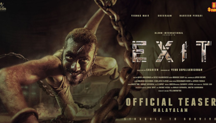 വിശാഖ് നായരെ കേന്ദ്ര കഥാപാത്രമാക്കി നവാഗതനായ ഷഹീൻ സംവിധാനം ചെയ്ത് ബ്ലൂം ഇന്റർനാഷണലിൻ്റെ ബാനറിൽ വേണുഗോപാലകൃഷ്ണൻ നിർമ്മിക്കുന്ന “എക്സിറ്റ് ” ചിത്രത്തിന്റെ ട്രെയിലർ റിലീസായി. മഞ്ജു വാര്യരുടെ ഫേസ് ബുക്ക് പേജിലൂടെയാണ് ട്രെയിലർ റിലീസ് ചെയ്തത്.ഇറങ്ങി നിമിഷങ്ങൾക്കുള്ളിൽ തന്നെ ട്രെയിലർ ഗംഭീര അഭിപ്രായം നേടുകയും ചെയ്തു. ഒരു കംപ്ലീറ്റ് ഡാർക്ക് മൂഡിൽ ഒരുക്കിയ ചിത്രം മാർച്ച് 8ന് തീയറ്ററുകളിൽ എത്തും. ചങ്ങലയിൽ പൂട്ടിയിട്ട ഒരു മനുഷ്യൻ്റെ വിചിത്രമായ രൂപവും മൃഗ സമാനമായ പ്രകൃതവും കാണിക്കുന്നതാണ് ട്രെയിലർ. സംഭാഷണമില്ലാതെ, അനിമൽ ഫ്ളോയിൽ സഞ്ചരിക്കുന്ന കഥാപാത്രവുമായി എത്തുന്ന മലയാളത്തിലെ ആദ്യ ഫോക്സി ആക്ഷൻ സർവൈവൽ ചിത്രമാണ് “എക്സിറ്റ് “എന്നതും ഒരു പ്രത്യേകതയാണ്.