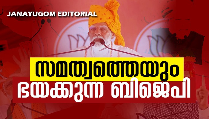 ലോക്സഭാ തെരഞ്ഞെടുപ്പിന്റെ ഓരോ ഘട്ടം പിന്നിടുമ്പോഴും വല്ലാതെ പരിഭ്രമിക്കുന്ന മോഡിയെയാണ് രാജ്യം കണ്ടുകൊണ്ടിരിക്കുന്നത്. പരസ്പരവിരുദ്ധമായ കാര്യങ്ങളും വാസ്തവവിരുദ്ധമായ പ്രസ്താവനകളും ശരീരഭാഷയുമെല്ലാം പരിഭ്രമം എത്രത്തോളമാണെന്ന് വ്യക്തമാക്കുന്നു. അതുകൊണ്ടാണ് അദ്ദേഹം നേരത്തെ നടത്തിയതിൽ നിന്ന് വ്യത്യസ്തമായ വിദ്വേഷം പ്രചരിപ്പിക്കുവാൻ ശ്രമിക്കുന്നതും കുപ്രചരണങ്ങൾ നടത്തുന്നതും. മുസ്ലിം സമുദായത്തെയാകെ നുഴഞ്ഞു കയറ്റക്കാരും കൂടുതൽ പ്രസവിക്കുന്നവരുമായി ചിത്രീകരിച്ചതിനെതിരെ ശക്തമായ പ്രതിഷേധമുയർന്നിട്ടും മോഡി അവസാനിപ്പിക്കുന്നില്ല. കഴിഞ്ഞ ദിവസം അദ്ദേഹത്തിന്റെ പ്രസംഗം രാജ്യത്ത് സമത്വമുണ്ടാക്കുകയെന്നത് അപകടകരമായ കളിയാണെന്നും അദ്ദേഹം പറഞ്ഞുവച്ചിരിക്കുന്നു. പ്രതിപക്ഷ പാർട്ടികൾ തങ്ങളുടെ പ്രകടന പത്രികയിൽ അവസര സമത്വത്തെ കുറിച്ച് വാഗ്ദാനം നൽകിയതിനെ പരാമർശിച്ചാണ് അദ്ദേഹം സമത്വവാദമെന്നത് അപകടകരമായ കളിയാണെന്ന് പറഞ്ഞിരിക്കുന്നത്. മോഡിയുടെ സവർണാഭിമുഖ്യവും കോർപറേറ്റ് ദാസ്യ മനോഭാവവും ഒരിക്കൽകൂടി വെളിപ്പെടുകയാണ് ഇവിടെ. ജാതി സെൻസസ് നടത്തി, സമൂഹത്തിൽ നിലനിൽക്കുന്ന സാമ്പത്തികമായ അന്തരങ്ങൾ ഇല്ലാതാക്കി സമത്വം സൃഷ്ടിക്കുമെന്നാണ് പ്രതിപക്ഷ പ്രകടന പത്രികയിൽ പറഞ്ഞിട്ടുള്ളത്. ഭരണഘടനാ നിർമ്മാതാക്കൾ മുതൽ പിന്നീട് രാജ്യം ഭരിച്ചവരും അല്ലാത്തവരുമെല്ലാം സമൂഹത്തിൽ നിലനിൽക്കുന്ന അസമത്വത്തിന്റെ മൂലകാരണം ജാതീയമായ വേർതിരിവുകളാണെന്നാണ് കണ്ടെത്തിയിട്ടുള്ളത്. സാമൂഹ്യനീതി നടപ്പിലാക്കപ്പെടണമെങ്കിൽ സമ്പത്തിന്റെയും അവസരങ്ങളുടെയും തുല്യമായ വിഭജനം നടപ്പിലാക്കപ്പെടുകയും വേണം. അതിന്റെ ഫലമായാണ് രാജ്യത്ത് സംവരണതത്വം നടപ്പിലാക്കിയത്. സാമ്പത്തികവും സാമൂഹ്യവുമായ അവസര സമത്വമാണ് ഇതിലൂടെ ലക്ഷ്യംവയ്ക്കുന്നത്.