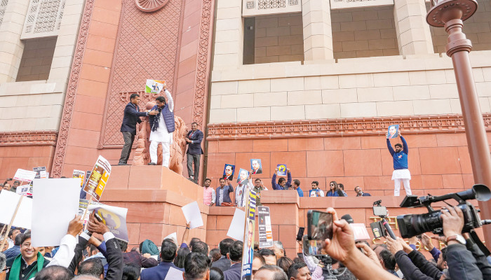 ഇന്നലെ രാവിലെ സമ്മേളിച്ച പാര്ലമെന്റിന്റെ ഇരു സഭകളും ഭരണ പ്രതിപക്ഷ ബഹളത്തില് മുങ്ങി ആദ്യം രണ്ടു വരെയും പിന്നീട് ഇന്നത്തേക്കും പിരിയുകയാണുണ്ടായത്. പ്രതിപക്ഷാംഗങ്ങള് ജയ് ഭീം മുദ്രാവാക്യം മുഴക്കിയപ്പോള് ട്രഷറി ബെഞ്ചില് നിന്നും ജയ് ശ്രീറാം വിളികള് ഉയര്ന്നു. സമ്മേളനം ഇന്ന് അവസാനിക്കും.