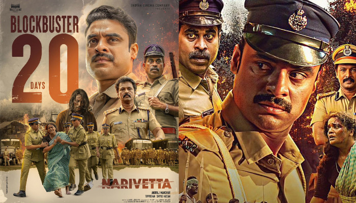 ടൊവിനോ തോമസ്, സുരാജ് വെഞ്ഞാറമൂട്, ചേരൻ എന്നിവരെ പ്രധാന കഥാപാത്രങ്ങളാക്കി അബിൻ ജോസഫിന്റെ തിരക്കഥയിൽ അനുരാജ് മനോഹർ സംവിധാനം ചെയ്ത നരിവേട്ട ഗംഭീര പ്രദർശന വിജയം നേടി മുന്നേറുന്നു. ഇതിനോടകം മൂന്നാം ആഴ്ച പിന്നിട്ടിരിക്കുന്ന നരിവേട്ടയുടെ പ്രദർശനം ഭാഷാഭേദമില്ലാതെ ഏവർക്കും ആസ്വദിക്കാവുന്ന വിധത്തിലാണ് ഒരുക്കിയിരിക്കുന്നത്. അതോടൊപ്പം ആഗോള ബോക്സ് ഓഫീസില് 22 കോടിയിലധികം നരിവേട്ട നേടി എന്നാണ് ട്രേഡ് അനലിസ്റ്റുകളുടെ റിപ്പോര്ട്ടുകള് സൂചിപ്പിക്കുന്നത്.