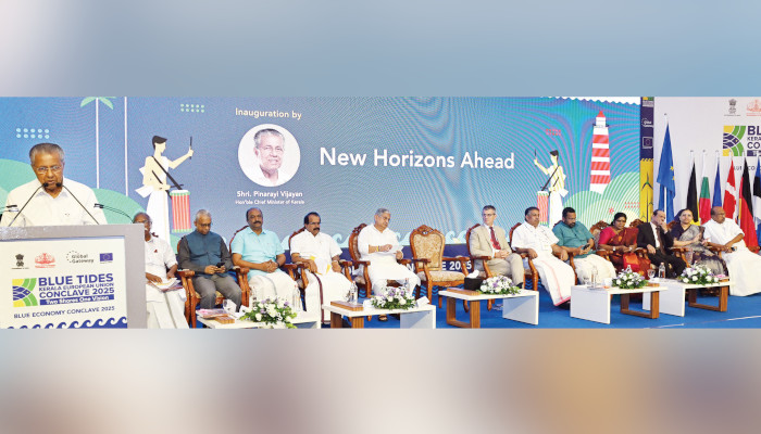 കേരള സമുദ്ര സമ്പദ് വ്യവസ്ഥയ്ക്ക് ശക്തമായ ഉത്തേജനമേകി ബ്ലൂ ടൈഡ്സ് കേരള — യൂറോപ്യൻ യൂണിയൻ കോൺക്ലേവ് സമാപിച്ചു. കോവളത്ത് നടന്ന ദ്വിദിന കോൺക്ലേവിൽ 28 നിക്ഷേപകർ 7,288 കോടി രൂപയുടെ നിക്ഷേപ നിർദേശങ്ങൾ സമർപ്പിച്ചു. ഭാവിയിൽ സംസ്ഥാനവുമായുള്ള ബന്ധം സുഗമമാക്കുന്നതിന് കേരളത്തിൽ ഒരു പുതിയ ഏജൻസി സ്ഥാപിക്കാൻ യൂറോപ്യൻ യൂണിയൻ അഭ്യർത്ഥിച്ചു.