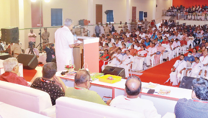 ചരിത്രം പരിശോധിച്ചാൽ ഫെഡറലിസത്തിനുള്ള പോരാട്ടത്തിൽ കമ്മ്യൂണിസ്റ്റ് പാർട്ടിയുടെ പങ്ക് വളരെ പ്രധാനമാണ്. വിവിധ സംസ്ഥാനങ്ങളിൽ ഉയർന്ന് വന്ന ഭാഷാ പ്രസ്ഥാനങ്ങളോട് ചേർന്ന് കമ്മ്യൂണിസ്റ്റുകാർ ഈ സമരത്തെ മുന്നോട്ട് കൊണ്ടുപോയിട്ടുണ്ട്. ഗവർണറെ ഉപയോഗിച്ച് കേന്ദ്ര സർക്കാർ നടത്തുന്ന പ്രവൃത്തികൾ ഫെഡറലിസത്തെ തകർക്കുന്നുവെന്ന് മുഖ്യമന്ത്രി പറഞ്ഞു. കേന്ദ്ര സർക്കാർ ആഗോളവൽക്കരണ നയങ്ങൾ നടപ്പിലാക്കുമ്പോൾ അത് തടയാനുള്ള സാഹചര്യം സൃഷ്ടിക്കണം. വിദ്യാഭ്യാസ മേഖലയിൽ അസ്വസ്ഥത സൃഷ്ടിക്കാനാണ് സംഘ് പരിവാര് നീക്കം. യഥാർത്ഥ ചരിത്രം പഠിക്കാനാകാതെ കെട്ടിച്ചമയ്ക്കപ്പെട്ട ചരിത്രം പഠിക്കാൻ നിർബന്ധിതരാവുകയാണ് പുതിയ തലമുറയെന്നും മുഖ്യമന്ത്രി പറഞ്ഞു. ജിഎസ്ടി പരിഷ്കരണം മൂലം സംസ്ഥാനത്ത് വർഷത്തിൽ ശതകോടികളുടെ വരുമാനം കുറയാൻ പോവുകയാണ്. ന്യൂനപക്ഷ സംരക്ഷണം കാറ്റിൽ പറത്തുന്ന നിലപാടാണ് കേന്ദ്ര സർക്കാർ നടപ്പിലാക്കുന്നത്. മുസ്ലിം, ക്രിസ്ത്യൻ വിഭാഗങ്ങൾക്കെതിരെ അക്രമങ്ങൾ അഴിച്ചു വിടുന്നു. വർഗീയതയെ ന്യൂനപക്ഷമായാലും ഭൂരിപക്ഷമായാലും എതിർക്കണം. ബിജെപിക്ക് നൽകുന്ന ഓരോ വോട്ടും കേരളത്തിന്റെ തനിമ പോലും തകർക്കുമെന്ന് അദ്ദേഹം ചൂണ്ടിക്കാട്ടി. ജനവിരുദ്ധ നയങ്ങൾ നടപ്പിലാക്കുമ്പോൾ ജനപിന്തുണ ലഭിക്കില്ല. സംഘ്പരിവാറിന്റെ രാഷ്ട്രീയവല്ക്കരണത്തിന് എതിരെ വിശാല ഐക്യം കെട്ടിപ്പടുക്കണമെന്നും അദ്ദേഹം പറഞ്ഞു.