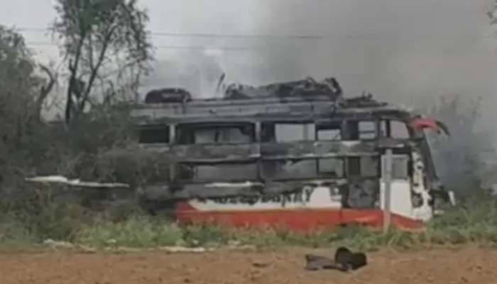നസീം (50), മകൾ സാഹിനം (20) എന്നിവരാണ് മരിച്ചത്. ബസ് ഓവർലോഡ് ചെയ്തിരുന്നതായി സബ് ഡിവിഷണൽ മജിസ്ട്രേറ്റ് വ്യക്തമാക്കി. ബസിന്റെ മുകളിൽ അമിതമായി കയറ്റിയ ലഗേജ് ഹൈടെൻഷൻ ലൈനിൽ തട്ടി ലൈൻ പൊട്ടിയതാണ് അപകടകാരണമെന്ന് പ്രഥമിക നിഗമനം. ഫയർഫോഴ്സ് എത്തിയപ്പോഴേക്കും ബസ് പൂർണ്ണമായും കത്തിനശിച്ചിരുന്നു. അഗ്നിശമന സേനാംഗങ്ങൾ ബസിലുണ്ടായിരുന്ന 25 പേരെ രക്ഷിച്ചതായി റിപ്പോര്ട്ട്. ബസിനുള്ളിൽ 15 ഓളം എൽപിജി സിലിണ്ടറുകൾ സൂക്ഷിച്ചിരുന്നതും അപകടത്തിന്റെ തീവ്രത വർധിപ്പിച്ചിരുന്നു. ഇതിൽ രണ്ടെണ്ണം പൊട്ടിത്തെറിച്ചതായി ഫയർഫോഴ്സ് ഉദ്യോഗസ്ഥൻ അറിയിച്ചു.