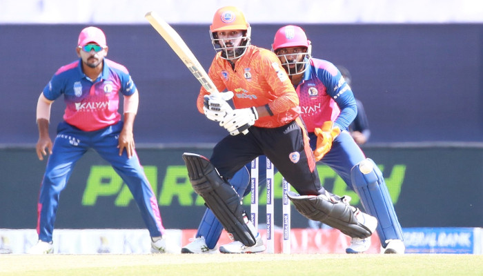 ഓപ്പണറായ സുബിന് എസ് റണ്സൊന്നുമെടുക്കാതെ പുറത്തായെങ്കിലും മൂന്നാം വിക്കറ്റില് ഒന്നിച്ച റിയ ബഷീര് (69), ഗോവിന്ദ് പൈ (68) എന്നിവര് റോയല്സിന് വിജയ പ്രതീക്ഷ നല്കിയിരുന്നു. 136 റണ്സ് കൂട്ടിച്ചേര്ത്തു. റോയല്സ് അനായാസം വിജയത്തിലേക്ക് നടന്ന് കയറുമെന്ന് തോന്നിച്ചു. ബഷീറും ഗോവിന്ദും അടുത്തടുത്ത ഓവറുകളില് പുറത്തായത് റോയല്സിന് തിരിച്ചടിയായി. ബഷീര് പുറത്തായ ശേഷം റോയല്സിനു തുടര്ച്ചയായി വിക്കറ്റുകള് നഷ്ടമായി. ഇതോടെ ആറിനു 147ലേക്കു അവര് തകരുകയും ചെയ്തു. അവസാന ഓവറില് 24 റണ്സാണ് റോയല്സിന് ജയിക്കാന് വേണ്ടിയിരുന്നത്. അഖില് ദേവ് എറിഞ്ഞ ഓവറില് ആറ് റണ്സെടുക്കാനാണ് റോയല്സിന് സാധിച്ചത്.
