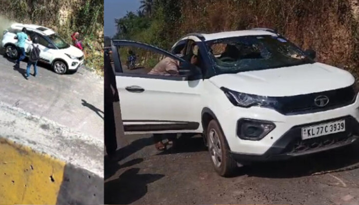 English Summary; Car caught fire in Vadakara; One seriously injured