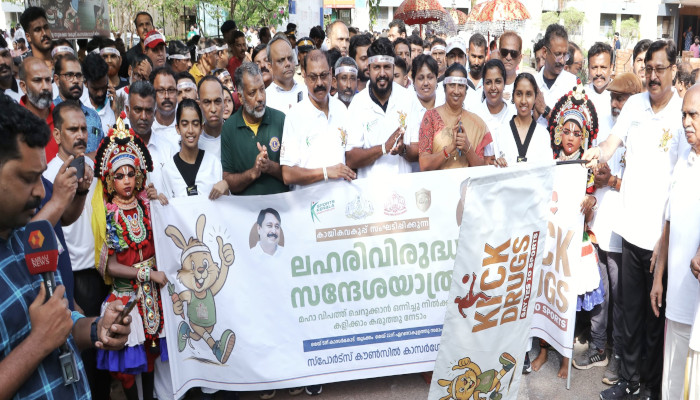 കായിക വകുപ്പ് മന്ത്രി വി അബ്ദുറഹിമാന് അധ്യക്ഷനായി. ചടങ്ങില് ജില്ലാ സ്പോര്ട്സ് കൗണ്സില് പ്രസിഡന്റ് പി ഹബീബ് റഹിമാന് ലഹരി വിരുദ്ധ പ്രതിജ്ഞ ചൊല്ലി കൊടുത്തു. എംഎല്എ മാരായ ഇ ചന്ദ്രശേഖന്, എം രാജഗോപാലന്, സി എച്ച്. കുഞ്ഞമ്പു, കാസര്കോട് മുനിസിപ്പല് ചെയര്പേഴ്സണ് അബ്ബാസ് ബീഗം, ജില്ലാ കളക്ടര് കെ ഇമ്പശേഖര്, ജില്ലാ പൊലീസ് മേധാവി വിജയ് ഭാരത് റെഡ്ഡി, സ്റ്റേറ്റ് സ്പോര്ട്സ് കൗണ്സില് പ്രസിഡന്റ് യു ഷറാഫലി, ഇന്റര്നാഷണല് കബഡി താരം ജഗദീഷ് കുമ്പള തുടങ്ങിയവര് പങ്കെടുത്തു. ജില്ലാപഞ്ചായത്ത് പ്രസിഡന്റ് ബേബി ബാലകൃഷ്ണന് സ്വാഗതവും ജില്ലാ സ്പോര്ട്സ് കൗണ്സില് സെക്രട്ടറി പ്രദീപന് എ വി നന്ദിയും പറഞ്ഞു. പരിപാടിയോടനുബന്ധിച്ച് ഖേലോ ഇന്ത്യ സ്റ്റുഡന്റ്സ് നടത്തിയ ഫെന്സിങ്, ചെറുവത്തൂര് കൈരളി പൂരക്കളി സംഘം അവതരിപ്പിച്ച പൂരക്കളിയും ചെറുവത്തൂര് കൈരളി കളരി സംഘം കളരിപ്പയറ്റും, യോഗ അസോസിയേഷന് നടത്തിയ യോഗ, തൈക്കൊണ്ടോ അസോസിയേഷന് നടത്തിയ തൈക്കൊണ്ടോ, ലഹരിക്കെതിരെ നൃത്ത ശില്പം, സൂമ്പഡാന്സ് എന്നിവ അരങ്ങേറി. വാക്കത്തോണ് കായിക വകുപ്പ് മന്ത്രി വി അബ്ദുറഹിമാന് ഫ്ളാഗ് ഓഫ് ചെയ്തു.
