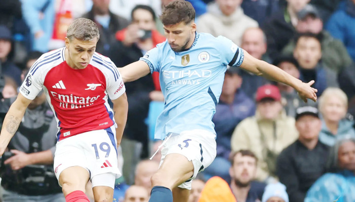 ഇംഗ്ലീഷ് പ്രീമിയര് ലീഗില് മാഞ്ചസ്റ്റർ സിറ്റിയും ആഴ്സണലും തമ്മിലുള്ള പോരാട്ടം സമനിലയില് പിരിഞ്ഞു. ഇരുടീമുകളും രണ്ട് ഗോള് വീതം നേടി. 2–1ന്റെ ലീഡുമായി സിറ്റിയുടെ തട്ടകത്തില് കച്ചമുറുക്കി വിജയം നേടാമെന്ന ഗണ്ണേഴ്സിന്റെ സ്വപ്നം അവസാന നിമിഷം 97-ാം മിനിറ്റിൽ ജോൺ സ്റ്റോൺസ് നേടിയ ഗോളിൽ പൊലിയുകയായിരുന്നു. പത്തുപേരായി ചുരുങ്ങിയിട്ടും സിറ്റിക്കെതിരെ അവസാനമിനിട്ടുവരെ ആഴ്സണല് ജയപ്രതീക്ഷയിലായിരുന്നു. കളിയുടെ ഒമ്പതാം മിനിറ്റിൽ തന്നെ എർലിങ് ഹാളണ്ടിലൂടെ സിറ്റിയാണ് ആദ്യം ലീഡ് സ്വന്തമാക്കിയത്.