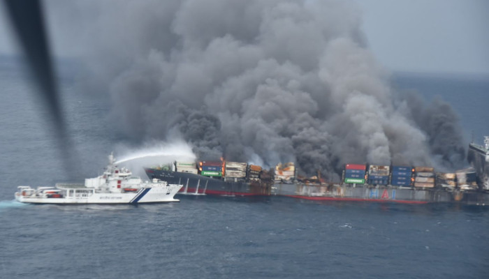 ഏകദേശം 650-കണ്ടെയ്നറുകളാണ് കപ്പലിലുള്ളത്. കപ്പലിലെ തീ അണയ്ക്കാനുള്ള ശ്രമങ്ങൾക്കു തിരിച്ചടിയാകുന്നതു കണ്ടെയ്നറുകളിലെ തീപിടിക്കുന്ന രാസവസ്തുക്കളാണ്. കണ്ടെയ്നറുകൾ ഇടയ്ക്കിടെ പൊട്ടിത്തെറിക്കുന്നുണ്ടെന്നാണു വിവരം. ഇതിനാൽ അടുത്തു ചെന്നു അഗ്നിരക്ഷാ പ്രവർത്തനം നടത്താൻ കോസ്റ്റ്ഗാർഡിനും നാവികസേനയ്ക്കും സാധിക്കുന്നില്ല. കപ്പലിന്റെ എല്ലാ ഭാഗത്തും തീ പടർന്നിട്ടുണ്ടെന്ന വിവരമാണു ലഭിക്കുന്നത്. കപ്പലിലെ നാല് ജീവനക്കാരെ കണ്ടെത്താനുള്ള തിരച്ചിലും തുടരുന്നുണ്ട്. കപ്പലിന്റെ അടിത്തട്ടിലടക്കം മുങ്ങല്വിദഗ്ധര് തിരച്ചില് നടത്തിയെങ്കിലും ഇവരെ കണ്ടെത്താനായില്ല. നിലവില് കപ്പല് നിയന്ത്രണമില്ലാതെ തെക്കുദിശയിലേക്ക് ഒഴുകുകയാണ്. അപകടത്തില്പ്പെട്ട സ്ഥലത്തുനിന്ന് രണ്ടുകിലോമീറ്ററോളം അകലേക്ക് കപ്പല് ഇപ്പോള് ഒഴുകിയെത്തിയിട്ടുണ്ട്. മുകള്ഭാഗം മുഴുവനും ഏകദേശം തീവിഴുങ്ങിയ നിലയിലാണ്.