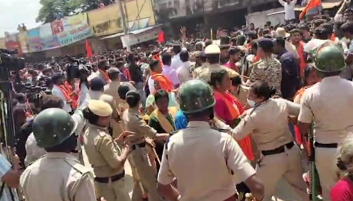 സാമുദായിക സാഹോദര്യത്തെ തകർക്കുന്ന ഊഹാപോഹങ്ങൾ പ്രചരിപ്പിക്കരുതെന്ന് പൊലീസ് കർശന നിർദേശം നൽകി. സമാധാനാന്തരീക്ഷം തകർക്കുന്ന ഒരു നീക്കവും നടത്തരുതെന്ന് പൊലീസ് പ്രദേശവാസികളോട് ആവശ്യപ്പെട്ടു. അതിനിടെ കോലാറിൽ നബിദിന ഘോഷയാത്രയ്ക്കിടെ പാലസ്തീൻ പതാക വീശിയതിൽ ബംഗാർപേട്ട് പൊലീസ് കേസെടുത്തു. അഞ്ച് പേരെ അറസ്റ്റ് ചെയ്തു.