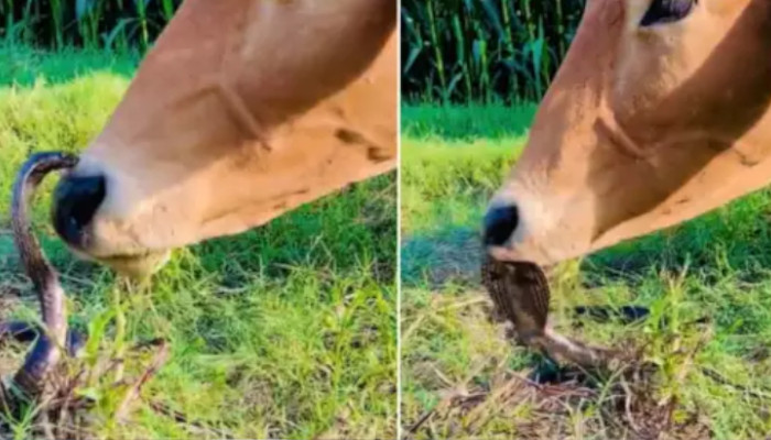 വളരെ അപൂര്വമായ ഈ ദൃശ്യങ്ങള് ക്യാമറയില് പകര്ത്തിയതാരാണെന്ന് വ്യക്തമല്ല. എക്സിലൂടെയാണ് വീഡിയോ പുറത്ത് വന്നിരിക്കുന്നത്. ടിക്ടോക്കിലും സംഭവം വൈറലാണ്. പാമ്പിനുപോലും സ്നേഹം വേണമെന്ന അടിക്കുറിപ്പോടെയാണ് വീഡിയോ ഇട്ടിരിക്കുന്നത്. നിരവധി കമന്റുകളാണ് വീഡിയോയ്ക്ക് താഴെയായി വന്നിരിക്കുന്നത്. 14 വയസുള്ള തന്റെ മകന് സ്കൂളില് പോകുമ്പോള് കെട്ടിപ്പിടിച്ച് ഉമ്മ തരുന്നത് പോലെയെന്ന് ഒരാള് കമന്റ് ചെയ്തപ്പോള്, മറ്റൊരാളുടെ കമന്റ്, സ്നേഹം പറഞ്ഞറിയിക്കാന് കഴിയാത്ത ഭാഷയാണെന്നും എല്ലാവരും അതിലൂടെയാണ് അഭിവൃദ്ധി നേടുന്നതെന്നുമാണ് കുറിച്ചിരിക്കുന്നത്. പശു അമ്മയാണെന്നും മൂഖന് ശിവനാണെന്നും പറയുന്നവരുണ്ട്.