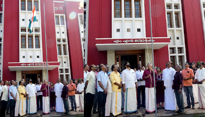റിപ്പബ്ലിക്ക് ദിനത്തിൽ തിരുവനന്തപുരം എംഎൻ സ്മാരകത്തിൽ സിപിഐ സംസ്ഥാന സെക്രട്ടറി ബിനോയ് വിശ്വം പതാക ഉയർത്തുന്നു ഫോട്ടോ രാജേഷ് രാജേന്ദ്രൻ Web Desk Trivandrum 1 year ago