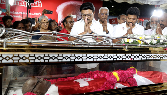 സിപിഐ കേന്ദ്ര സെക്രട്ടേറിയറ്റ് അംഗങ്ങളായ കെ പ്രകാശ് ബാബു, രാമകൃഷ്ണ പാണ്ഡ, ആനി രാജ, കെ രാമകൃഷ്ണ, തമിഴ് ചലച്ചിത്രതാരങ്ങളായ രജനികാന്ത്, ടിവികെ അധ്യക്ഷൻ കൂടിയായ വിജയ്, സൂര്യ, കാര്ത്തി, വിജയ് സേതുപതി, പാര്ത്ഥിപന്, സീമാന്, മന്സൂര് അലി ഖാന്, നാഞ്ചില് സമ്പത്ത്, എം എസ് ഭാസ്കര്, സംവിധായകരായ പാ രഞ്ജിത്ത്, ഗൗതമൻ, തിരുച്ചി ശിവ എംപി, എംഡിഎംകെ നേതാവ് വൈക്കോ, തോള് തിരുമാവളവന്, ജി കെ വാസൻ, ഒ പനീര്ശെല്വം, അന്പുമണി രാംദോസ് തുടങ്ങിയവര് വിപ്ലവനായകന് അന്ത്യാഭിവാദ്യമര്പ്പിച്ചു.
