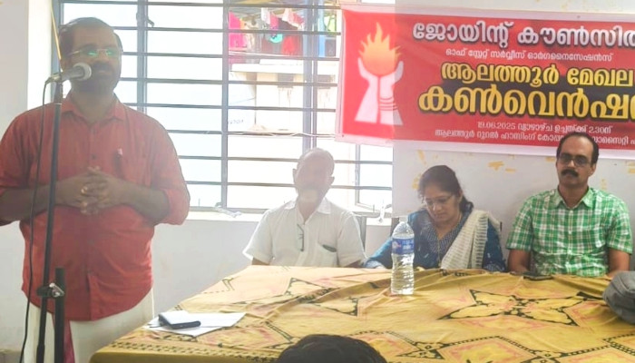ജീവനക്കരുടെ അവകാശങ്ങൾ എന്നും സംരക്ഷിക്കുകയും ആനുകൂല്യങ്ങൾ സമയബന്ധിതമായി നൽകുകയും ചെയ്തിട്ടുള്ള ഇടതുപക്ഷ പാരമ്പര്യമുള്ളപ്പോൾ ന്യായമായ അവകാശങ്ങൾ സംരക്ഷിച്ച് കിട്ടാൻ വീഥിയിലിറങ്ങേണ്ടി വരുന്നതും ആനുകൂല്യങ്ങൾ വൈകുന്നതും ജീവനക്കാരിൽ ആശങ്ക സൃഷ്ടിക്കുന്നുവെന്നും കുടിശ്ശികയാവുന്ന ക്ഷാമബത്തകൾ അനുവദിക്കാത്തതും ശംമ്പള പരിഷ്കരണ നടപടികൾ നീട്ടി കൊണ്ട് പോവുന്നതും ജീവനക്കാരുടെ ആശങ്ക നാൾക്കുനാൾ വർദ്ധിപ്പിക്കാൻ മാത്രമെ ഉപകരിക്കൂവെന്നും ജോയിന്റ് കൗൺസിൽ ആലത്തൂർ മേഖല കൺവെൻഷൻ അഭിപ്രായപ്പെട്ടു. കൺവെൻഷൻ സംസ്ഥാന സെക്രട്ടറിയേറ്റംഗം എം സി ഗംഗാധരൻ ഉദ്ഘാടനം ചെയ്തു. കെ സുരേന്ദ്രന് അധ്യക്ഷത വഹിച്ചു. ജില്ലാ സെക്രട്ടറി എ അംജത് ഖാൻ റിപ്പോർട്ട് അവതരിപ്പിച്ചു. എം എസ് അനിൽകുമാർ, സി എ ഈജു, സന്തോഷ് പി കെ എസ് സ്വപ്ന, സജീവ് ജി, എ ശ്രുതി എന്നിവർ സംസാരിച്ചു.