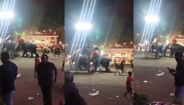 Eng­lish Summary:During Aratupuzha Pooram, ele­phants ran into each oth­er; Many peo­ple were injured