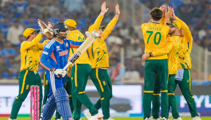 2024 ടി20 ലോകകപ്പ് ഫൈനലിലെ തോല്വിക്ക് കണക്ക് വീട്ടി ദക്ഷിണാഫ്രിക്ക. ടി20 ലോകകപ്പിലെ ആദ്യ സൂപ്പര് എട്ട് മത്സരത്തില് ഇന്ത്യക്ക് 76 റണ്സ് തോല്വി. ടോസ് നേടി ബാറ്റിങ് തെരഞ്ഞെടുത്ത ദക്ഷിണാഫ്രിക്ക നിശ്ചിത 20 ഓവറിൽ ഏഴ് വിക്കറ്റ് നഷ്ടത്തിൽ 187 റൺസെടുത്തു. മറുപടി ബാറ്റിങ്ങിനിറങ്ങിയ ഇന്ത്യ 18.5 ഓവറില് 111 റണ്സിന് ഓള്ഔട്ടായി. മറുപടി ബാറ്റിങ്ങിനിറങ്ങിയ ഇന്ത്യയെയും അതേ നാണയത്തില് ദക്ഷിണാഫ്രിക്ക തിരിച്ചടിച്ചു. 26 റണ്സിനിടെ മൂന്ന് വിക്കറ്റുകള് പിഴുതു. ഇഷാന് കിഷന് (പൂജ്യം), തിലക് വര്മ്മ (ഒന്ന്) എന്നിവര് അതിവേഗം മടങ്ങി. പിന്നാലെ സൂര്യകുമാര് യാദവ് എത്തി. എന്നാല് ഓപ്പണറായ അഭിഷേക് ശര്മ്മ അധികം വൈകാതെ മടങ്ങി. 12 പന്തില് 15 റണ്സെടുത്താണ് താരത്തിന്റെ മടക്കം. വാഷിങ്ടണ് സുന്ദറിന് സ്ഥാനക്കയറ്റം ലഭിച്ച് ക്രീസിലെത്തിയെങ്കിലും താരത്തിനും കാര്യമായി ഒന്നും ചെയ്യാനായില്ല. 11 പന്തില് 11 റണ്സെടുത്ത സുന്ദറിനെ കോര്ബിന് ബോഷ് ക്വിന്റണ് ഡി കോക്കിന്റെ കൈകളിലെത്തിച്ചു.