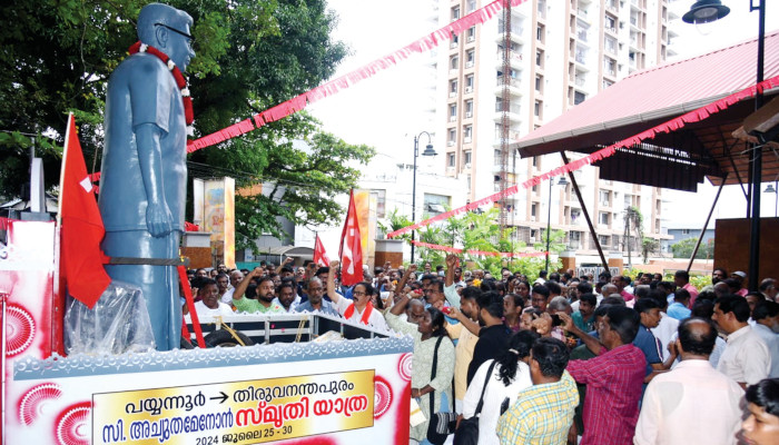 തിരുവനന്തപുരത്ത് മ്യൂസിയത്തിന് സമീപം പ്രത്യേകം തയ്യാറാക്കിയ മണ്ഡപത്തിൽ സ്ഥാപിക്കുന്നതിനുള്ള സി അച്യുതമേനോന്റെ പ്രതിമയും വഹിച്ചുള്ള സ്മൃതിയാത്രയ്ക്ക് നൽകിയ സ്വീകരണങ്ങളിൽ സംസാരിക്കുകയായിരുന്നു യാത്രാ ലീഡര് കൂടിയായ അദ്ദേഹം.