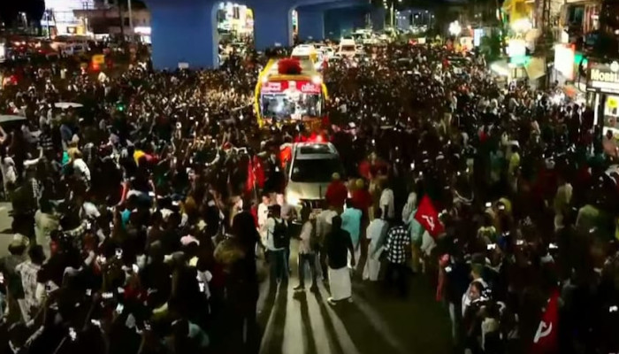 ഇരുട്ടിലും മങ്ങാതെ സമര സൂര്യന്റെ യാത്ര. വഴികളെല്ലാം നിറഞ്ഞു ജനസഞ്ചയം ഇരമ്പുമ്പോൾ നിശ്ചയിച്ച സമയത്തിലും ഏറെ വൈകി വിലാപയാത്ര ആറ്റിങ്ങൽ കോരാണിയിലെത്തി. തൊണ്ടപൊട്ടി മുദ്രാവാക്യം മുഴക്കിയാണ് തങ്ങളുടെ പ്രിയ സഖാവിനെ യാത്രയാക്കാൻ റോഡിനിരുവശത്തും ജനസാഗരം തടിച്ചുകൂടിയത്. പ്രായഭേദമന്യേ നിരവധിപ്പേരാണ് വിഎസിനെ അവസാനമായി കാണാൻ കാത്തുനിൽക്കുന്നത്.ഏഴര മണിക്കൂറിനുള്ളിൽ പിന്നിട്ടത് 30 കിലോമീറ്റർ മാത്രമാണ് . രാത്രി ഏറെ വൈകിയും വഴിയരികിൽ കാത്ത് നിന്ന് അന്ത്യാഞ്ജലി അർപ്പിക്കുന്നവർ ഒരേ സ്വരത്തിൽ പറയുന്നു ആയിരക്കണക്കിന് മനുഷ്യരുടെ പ്രതീക്ഷയും വിശ്വാസവുമായിരുന്നു വി എസ് എന്ന രണ്ടക്ഷരമെന്ന് . കാലിടറാതെയുള്ള മണിക്കൂറുകൾ നീളുന്ന കാത്തിരിപ്പിലും പാതയോരങ്ങളിൽ നിറയുന്നത് വിഎസിന്റെ ഓർമ്മകളാണ് . കൊല്ലം ജില്ലയിലെ വിവിധ കേന്ദ്രങ്ങൾ കടന്ന് വിലാപയാത്ര ഇന്ന് ആലപ്പുഴയിലെത്തും.