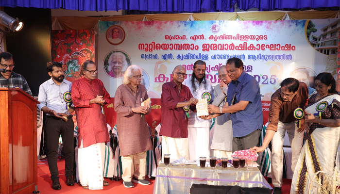 എൻ കൃഷ്ണപിള്ളയുടെ നൂറ്റിയൊൻപതാം ജന്മവാർഷികാഘോഷത്തിൻ്റെ ഭാഗമായി പ്രൊഫ. എൻ കൃഷ്ണപിള്ള ഫൗണ്ടേഷൻ സംഘടിപ്പിച്ച കലോത്സവത്തിൻ്റെ ഉദ്ഘാടന സമ്മേളത്തിൽ എഴുമറ്റൂരിൻ്റെ മൂന്നു പുസ്തകങ്ങൾ പ്രകാശിപ്പിച്ചു. അടൂർ ഗോപാലകൃഷ്ണൻ ഉദ്ഘാടനം ചെയ്ത യോഗത്തിൽ എൻ കൃഷ്ണപിള്ളയുടെ പ്രതിപാത്രം ഭാഷണഭേദം എന്ന ഗ്രന്ഥം അടൂർ ഗോപാലകൃഷ്ണനും അമൃതകിരണങ്ങൾ എന്ന പുസ്തകം ശ്രീകുമാരൻ തമ്പിക്കും എഴുമറ്റൂരിൻ്റെ സർഗ്ഗപ്രപഞ്ചം എന്ന കൃതി ഡോ. എം.എൻ. രാജനും നൽകിക്കൊണ്ട് റ്റി പി ശ്രീനിവാസൻ പ്രകാശനം ചെയ്തു. ഡോ. എം എൻ രാജൻ ഗ്രന്ഥാവലോകനം നിർവ്വഹിച്ചു. പന്ന്യൻ രവീന്ദ്രൻ്റെ അദ്ധ്യക്ഷതയിൽ നടന്ന യോഗത്തിൽ അനന്തപുരം രവി, എസ് ഗോപിനാഥ്, ലീല പണിക്കർ, ജി. ശ്രീറാം , ബി സനിൽ കുമാർ, ജി വിജയകുമാർ, ആർ എസ് ശ്രീരാജ് എന്നിവർ സംബന്ധിച്ചു.