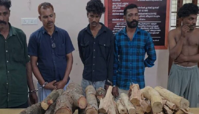 പാലോട് ഫോറസ്റ്റ് റേഞ്ച് ഓഫീസർ വി വിപിൻ ചന്ദ്രനും സംഘവുമാണ് രഹസ്യവിവരത്തിന്റെ അടിസ്ഥാനത്തിൽ പ്രതികളെ പിടികൂടിയത്. ഇവരെ ഇന്ന് നെടുമങ്ങാട് വനം കോടതിയിൽ ഹാജരാക്കും. ആറ് മാസത്തിനകം 6 കേസുകളിലായി 24 പ്രതികളിൽ നിന്നും പാലോട് വനം വകുപ്പ് 492 കിലോ ചന്ദനത്തടികളാണ് പിടികൂടിയത്.