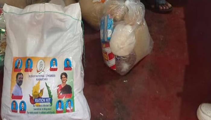 രാഹുല്ഗാന്ധിയുടെയും പ്രിയങ്ക ഗാന്ധിയുടെയും ചിത്രം പതിപ്പിച്ച ഭക്ഷ്യകിറ്റ് പിടികൂടി. വയനാട് തോല്പ്പെട്ടിയിലാണ് സംഭവം. കോണ്ഗ്രസ്സ് മണ്ഡലം പ്രസിഡന്റ് ശശിയുടെ മില്ലില് നിന്നാണ് ഫ്ലൈയിംഗ് സ്ക്വാഡ് കിറ്റ് പിടിച്ചെടുത്തത്. രാഹുലിനെയും പ്രിയങ്കയെയും കൂടാതെ സോണിയ ഗാന്ധി, മല്ലികാര്ജുന് ഖാര്ഗെ എന്നിവരുടെ ചിത്രങ്ങളടങ്ങിയ കിറ്റുകളും പിടിച്ചെടുത്തിട്ടുണ്ട്. എന്നാല് ദുരന്തബാധിതര്ക്കായി നല്കാന് എത്തിച്ച കിറ്റാണിതെന്നാണ് ടി സിദ്ദിഖ് എംഎല്എയുടെ വിശദീകരണം