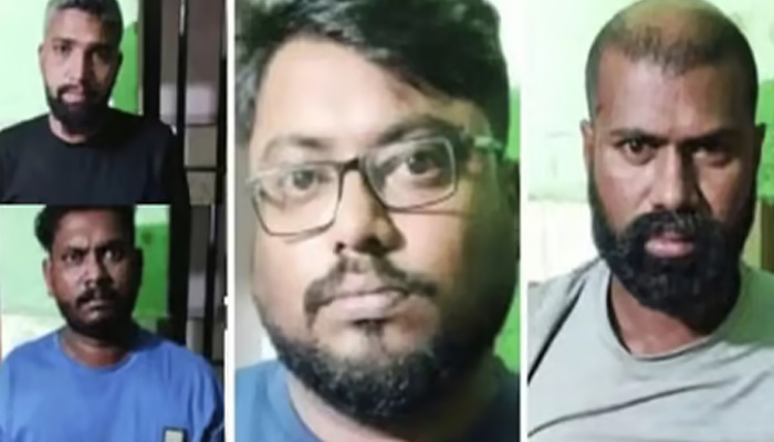 ജ്വല്ലറി അടച്ച് വീട്ടിലേക്കു പോവുകയായിരുന്ന ഉടമകളെ ആക്രമിച്ച് മൂന്നര കിലോഗ്രാം സ്വർണം കവർന്ന സംഭവത്തിൽ നാലു പേർ പിടിയിലായി. കണ്ണൂർ സ്വദേശികളായ പ്രബിൻ ലാൽ, ലിജൻ രാജൻ, തൃശൂർ സ്വദേശികളായ സതീശൻ, നിഖിൽ എന്നിവരാണ് പിടിയിലായത്. തൃശൂർ വെസ്റ്റ് ഫോർട്ട് പരിസരത്തു നിന്നും വാഹനത്തിൽ സഞ്ചരിക്കുമ്പോഴാണ് ഇവരെ കസ്റ്റഡിയിലെടുത്തത്. വാഹനത്തിൽ നിന്ന് സ്വർണം കണ്ടെത്താനായിട്ടില്ല. സംഘത്തിലുണ്ടായിരുന്ന ഒരാളെ പിടികൂടാനുമായിട്ടില്ല.
