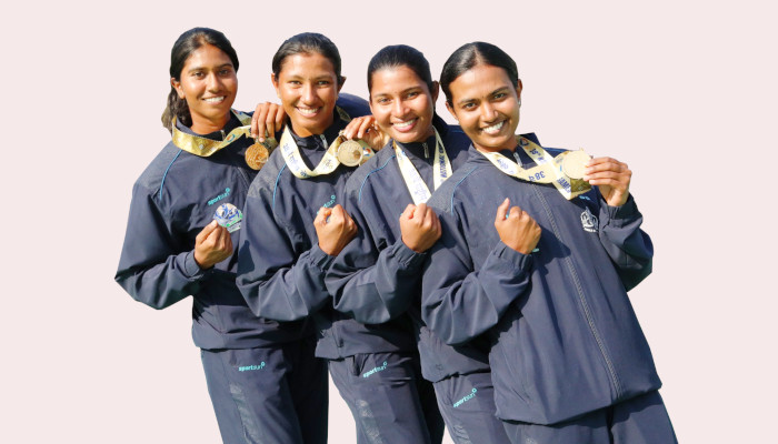 ദേശീയ ഗെയിംസ് തുഴച്ചിലില് വനിതാ കോക്സലസ് ഫോറില് കേരളത്തിന് സ്വര്ണം. ഇനത്തിൽ റോസ് മരിയ ജോഷി, വർഷ കെ ബി, അശ്വത്, മീനാക്ഷി എന്നിവരടങ്ങുന്ന സംഘമാണ് കേരളത്തിന് സ്വര്ണം സമ്മാനിച്ചത്. വനിതാ കോക്സലസ് പെയറില് വിജിന മോള് ബി, അലീന ആന്റോ സഖ്യം വെള്ളി സ്വന്തമാക്കി.